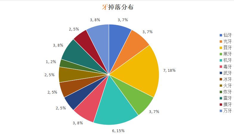 以其他大佬的数据对比可以发现,5孔牙的掉率明显较低。