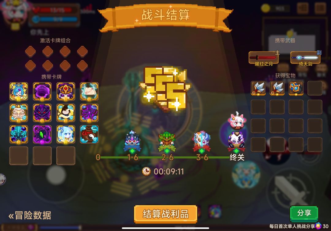 另外魔剑虽然能提供很高的暴击伤害,但是我使用时,运气不好的时候可能会一局都拿不到一把刀剑,导致其变成无用卡,这张卡还是看喜好带吧。