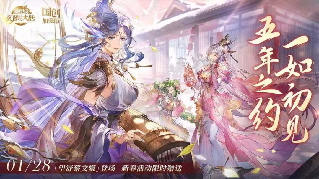 - 全武将免费领(新春幻想服专属活动为签到领取全武将),新魂将蔡文姬也可免费获得。