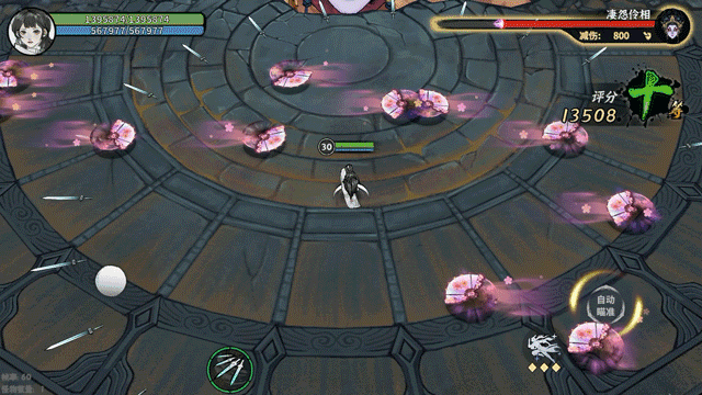凄怨伶相的第3项技能是从场地两边袭来的小折扇,折扇飞行速度不快,路线固定,只是数量稍多,只要我们不贪刀,一般也不会中招。