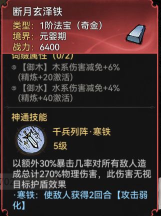 本命法宝带竹、皮的好,有的话主皮就好;最好的是带竹或皮+奇金的,直接主三阶皮、竹,副一阶寒铁,技能用一阶寒铁的,好用!