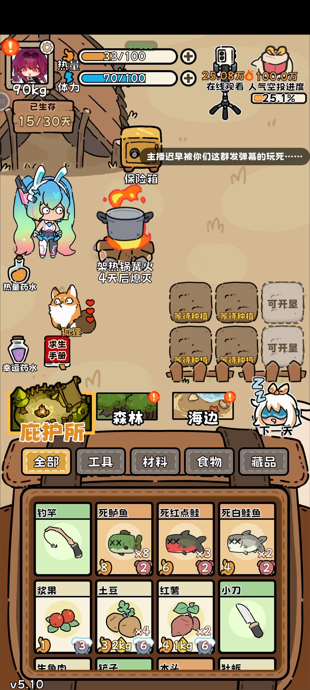 在十天内就拿齐了钓鱼三件套,但是钓鱼炸了,一水绿头龟,但是后期又不喝药水给了两个大型,(本来该钓鱼出的脂肪动物最终还是出了)