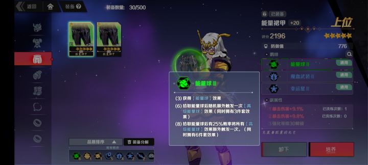 目前版本的能量套,八件套的“所有高级能量球”效果,指的是你的当前法盘所拥有的所有高级能量球触发一遍,而不是图鉴的全部高级能量球触发一遍,但六件套的“一次高级能量球”效果指的却是图鉴的所有高级能量球随机触发一种