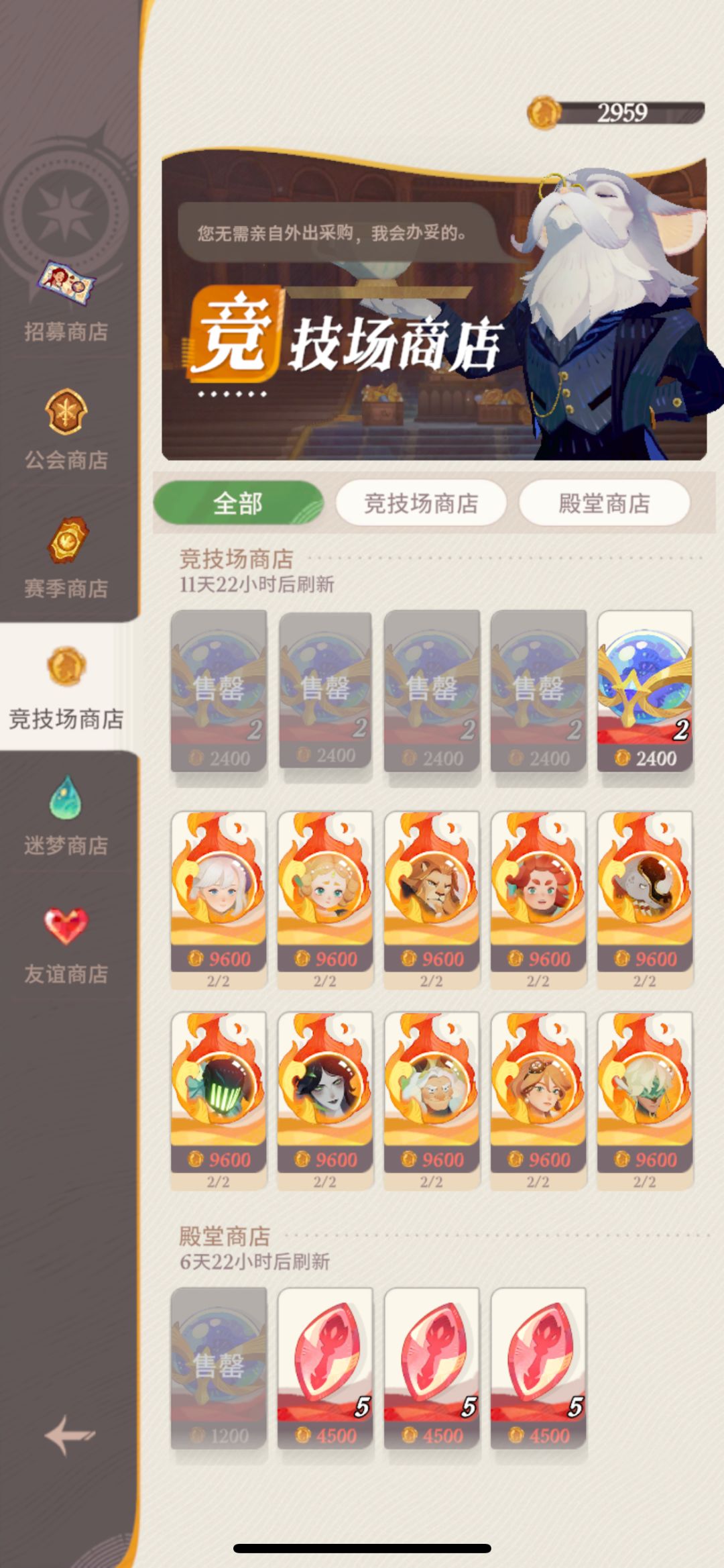 5商店,大家不要忘记多看看商店,新上了很多东西,赛季商店里上新了英雄、迷梦商店上面提到了新上了金瓜子碎片和英雄专属金瓜子,公会商店上新了新神魔双子,这里重点说一下竞技场商店,大家尽量先将殿堂商店里的神魔召唤球和红瓜子兑换,因为每周刷新一次,上面每月刷新一次的神魔召唤球可以最后一起兑换,这样可以资源获取最大化!