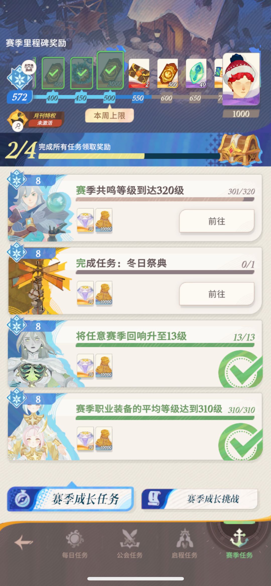 1赛季主线任务,赛季主线任务要最先完成,不仅可以得到大量的钻石奖励,还会解锁相应的赛季回响,新赛季刚开始能快速拿到回响也是增强实力的一种办法,并且赛季任务也需要完成相对应的主线!