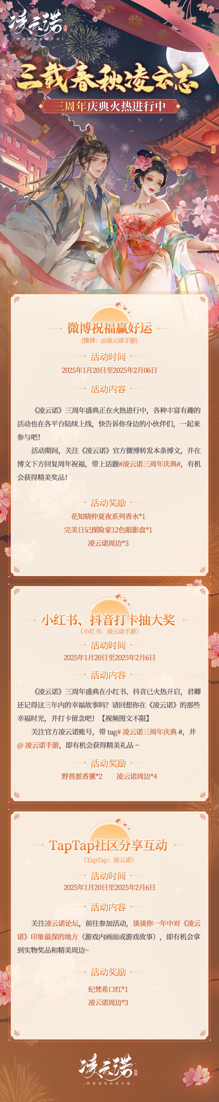 【有奖活动】三载春秋凌云志,凌云诺三周年快乐!