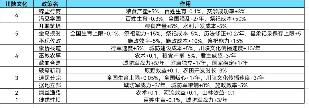 牲殉祭祀:考虑到祭祀成本再高也高不到哪里去,反而祭祀加成数值、祭祀成功率远比成本重要,因此为正面政策。