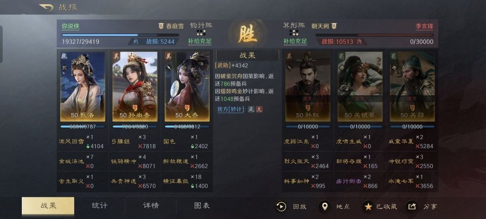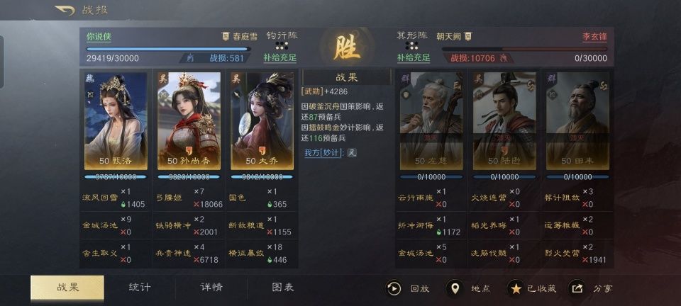 在此特别鸣谢游戏ID名为“你说侠”的玩家朋友,给本文提供了宝贵的创作素材。他麾下由大乔、孙尚香和甄洛组成的红颜弓,只用了两个回合便把对面夏侯惇、邓艾和姜维组成的夏炖姜给打崩了。这里面的门道有哪些值得借鉴的看点,我都给整理到了下文的段落之中。