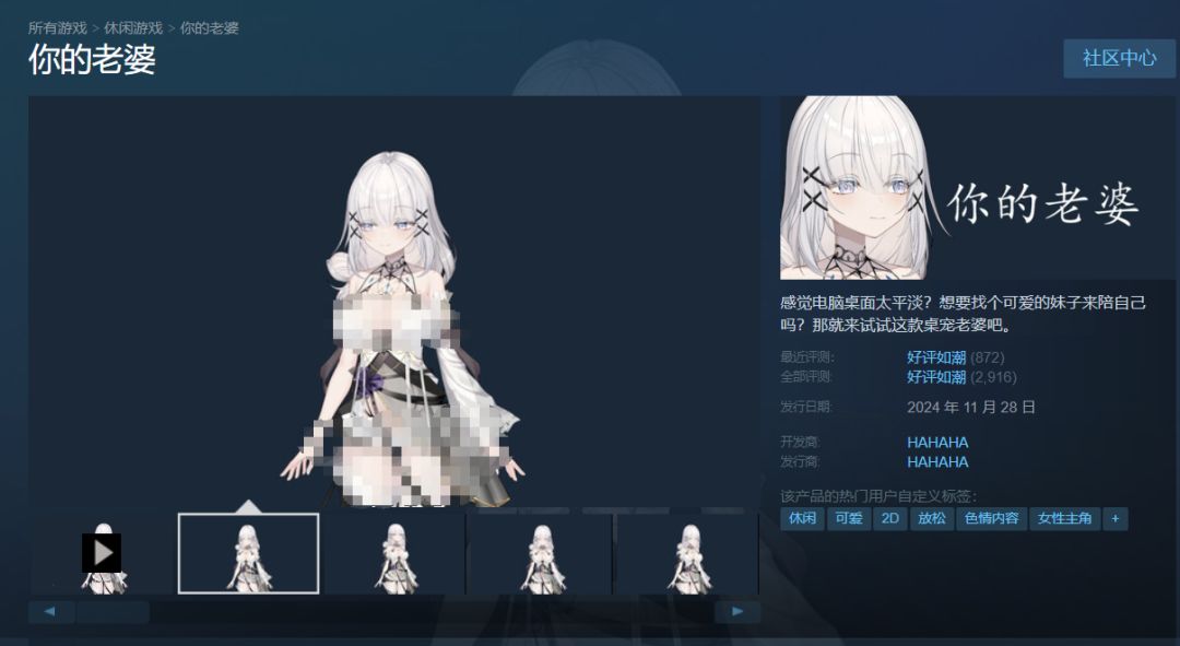 这款游戏的取名主打一个整活,唯一的作用就是逗逗你的Steam好友。游戏价格6元,为live2D建模桌宠,眼睛会随鼠标一起移动,没有什么其他功能。娱乐效果大于游玩效果。