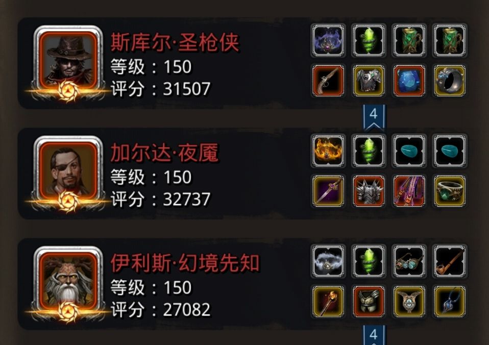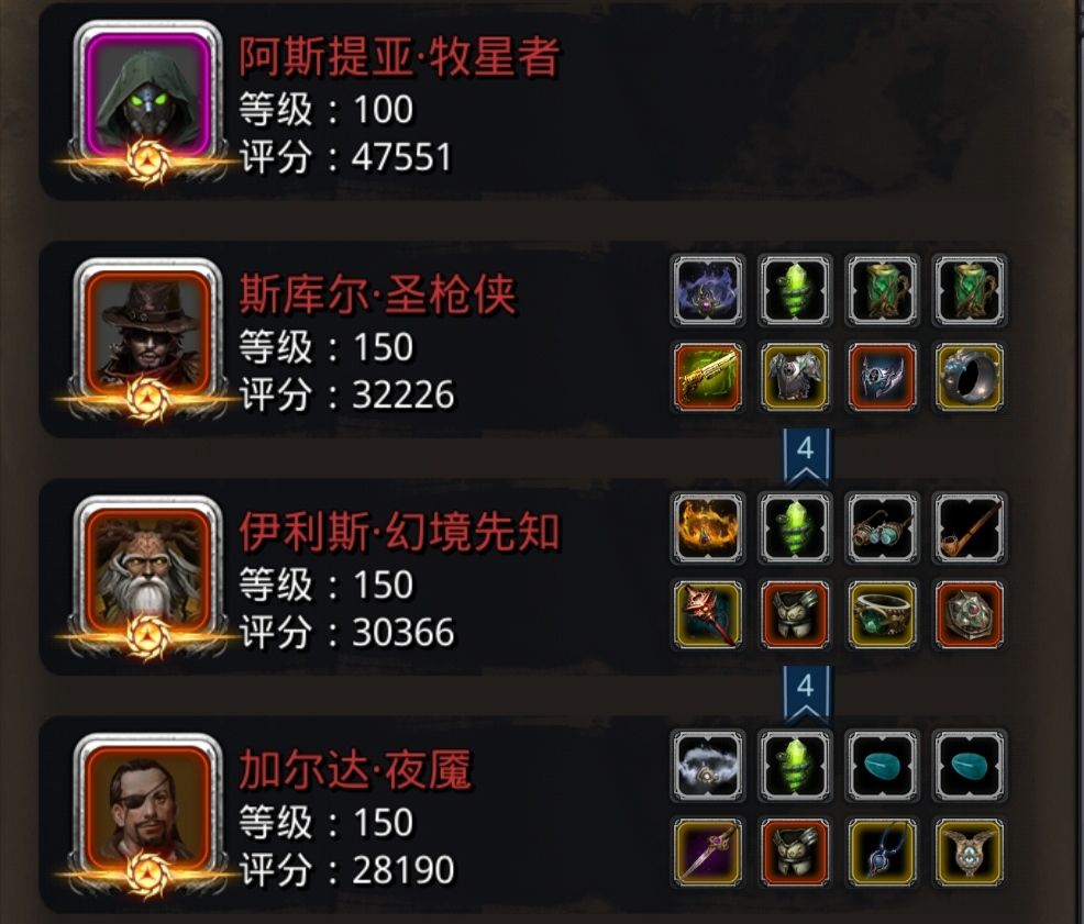 推荐阵容3.血法枯萎流(剩下的一个位置就在下面的自选阵容里随便挑一个你目前输出最高的职业):