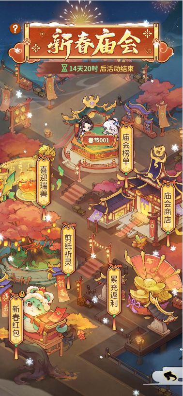 庙会榜单:通过活动积分进行排行,活动结束后会根据排名发放奖励