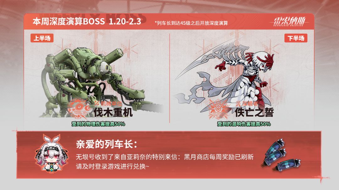 本周黑月商店货物及异构厄枝已刷新,请列车长及时登录游戏进行查看~