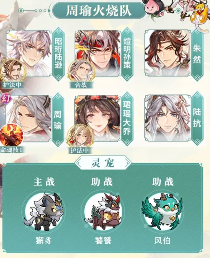 所以火烧队六神将自选推荐选:陆抗,鲁肃,朱然,伏寿,凌统,黄月英(0氪选孙鲁班)