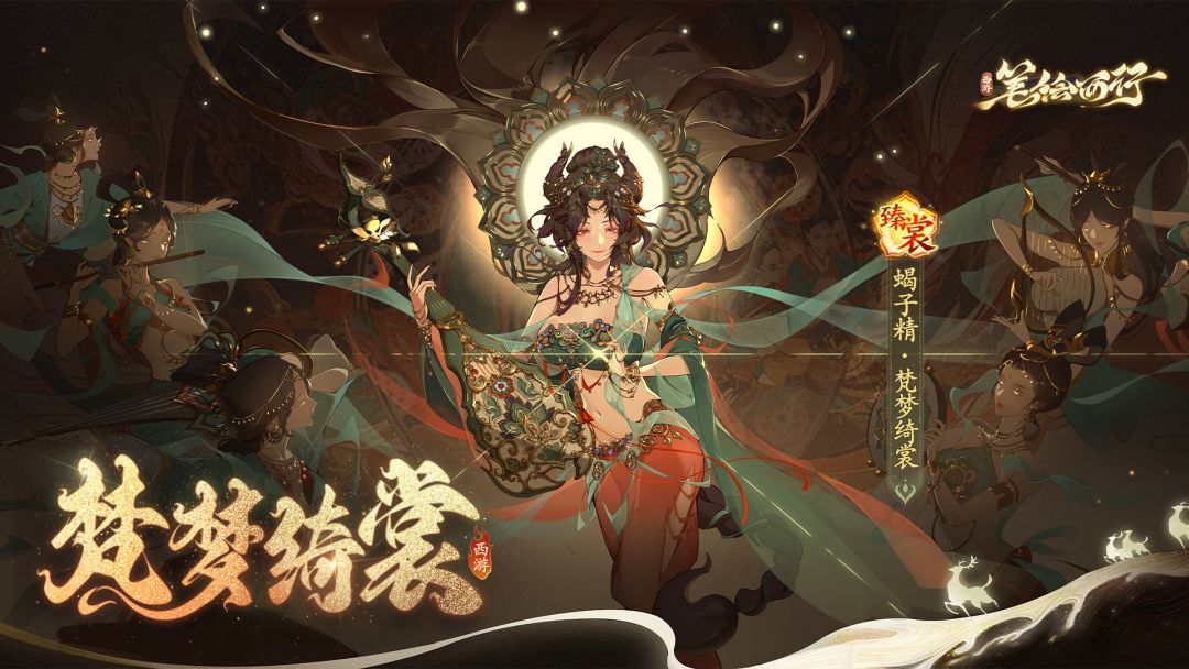 神秘又傲娇的「蝎子精」也毫不示弱,着急出场呢~「蝎子精·梵梦绮裳」也将在新春版本中上线,蝎子精身着一袭流光溢彩的长裙,裙摆轻盈如云,随风摇曳,尽显古风雅韵,其姿态宛若仙子一般。手中紧握的繁复花纹乐器,不仅演奏佳音,更是承载着中国千年音乐文化精髓的艺术瑰宝。其身旁环绕的女子,身着华服,手持各式乐器,与蝎子精一起共奏天籁之音。快来换上这套文化底蕴拉满的新皮肤吧,一秒成为C位焦点哦!