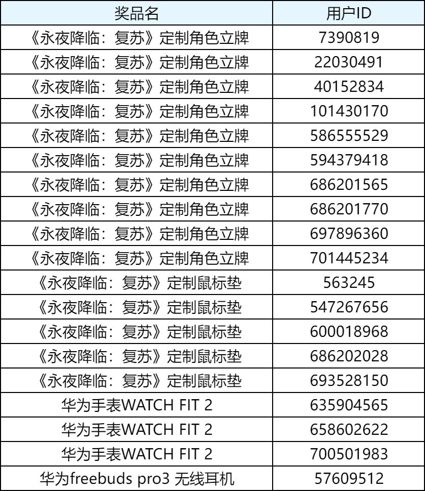2. 活动结束后,本贴将公示中奖名单,本活动将由TapTap平台抽奖系统自动抽取,中奖的玩家将会收到系统通知,请准确填写收件人信息。