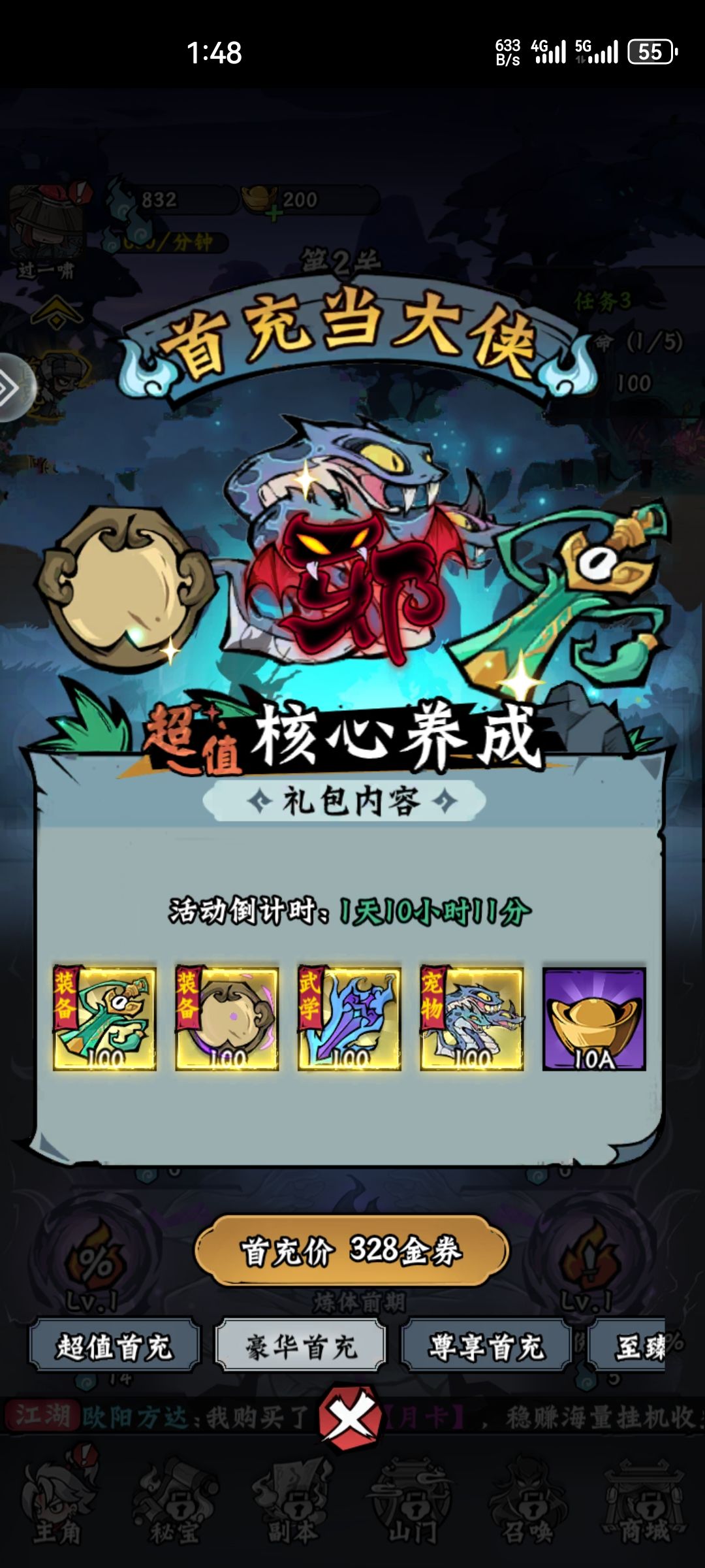这种礼包就买没有的,开图鉴用(刷山门禁地有超凡礼包和经验包)