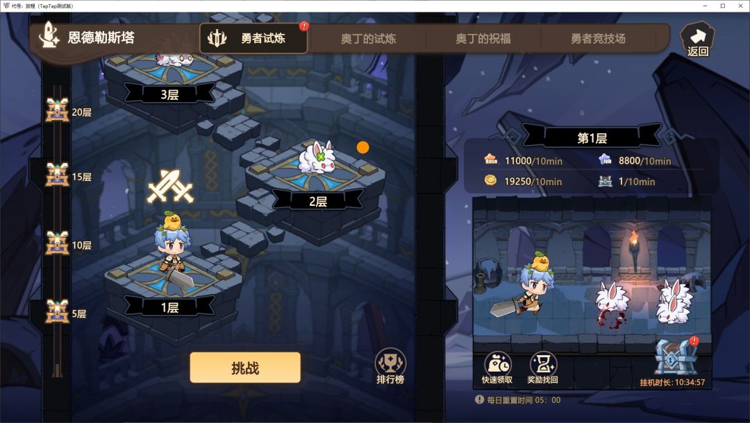 1)恩德勒斯塔进行了优化,增加了放置挂机玩法·勇者试炼,自此玩家再也不需要晚上开着手机挂机了。同时调整了原来肉鸽玩法·奥丁试炼的开启时机