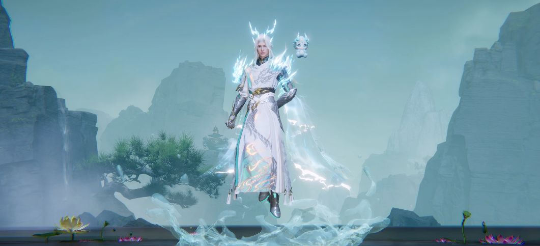 在最终形态中,这款时装焕发出更加华丽的变身效果。蛟盘绕其间,仿佛天地间的力量凝聚,身后绽放出一袭波光粼粼的水波披风,随风轻轻摆动。鳞甲闪烁着光芒,与披风相得益彰,整体散发出一股强大的神秘气息。每一个细节都彰显着无与伦比的尊贵与力量,仿佛召唤着水的精灵,带来无尽的祝福与庇护。