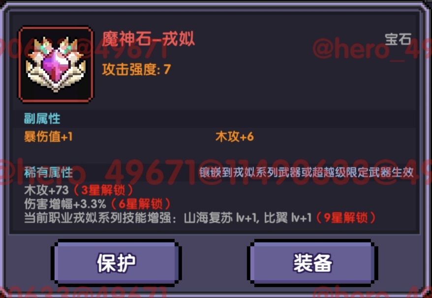 洗练词条:元穿/爆伤/属攻(面板元穿在3500左右,一般竞技场的宝石洗6个元穿就差不多了,爆伤属攻越高,元穿也可以再往高堆)