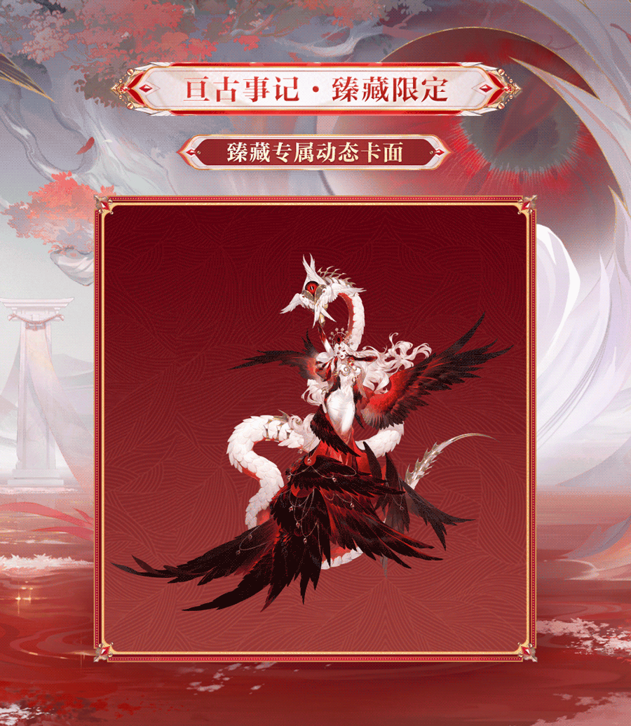 已获得典藏皮肤「亘古事记」的大人可额外购买「臻藏专属礼遇」升级「亘古事记·臻藏」解锁专属心境、自定义染色系统、动态头像与动态头像框等臻藏专属系列权益。