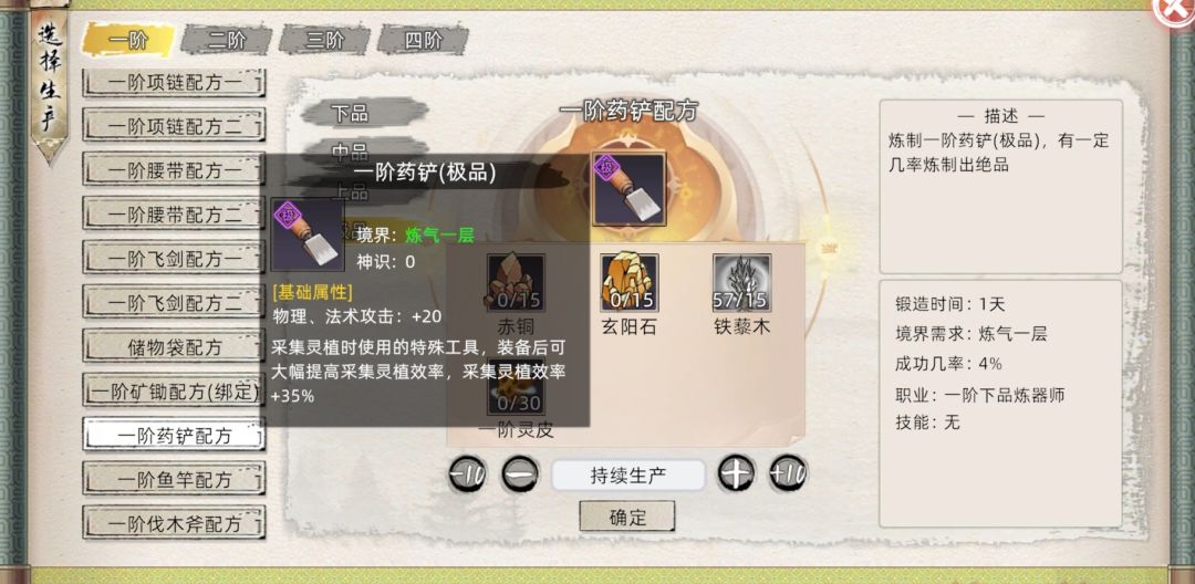 在解决了修炼和对一些天赋的选择问题之后,我们接下来为了保障自己的修仙质量学习下各种生活技能。