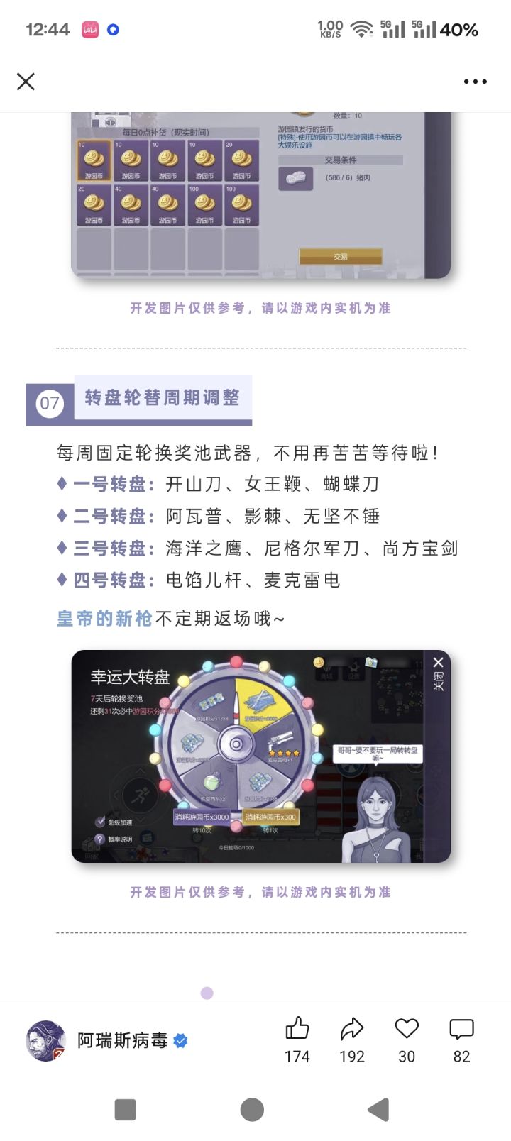 左上转盘武器轮换顺序(120币/抽,30抽保底武器):开山叨、女王鞭、蝴蝶叨。当然还有个自行车也是这个转盘。