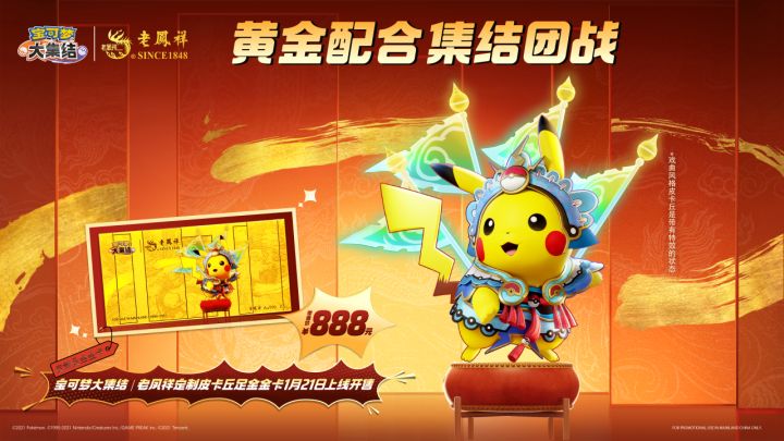 1月20日晚,《宝可梦大集结》官宣,游戏联动老凤祥独家定制的专属于宝可梦大集结的足金金卡,闪亮登场!