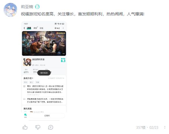 1、评论楼层超过100楼时,测试开服当天为所有玩家赠送“预约福利礼包”。