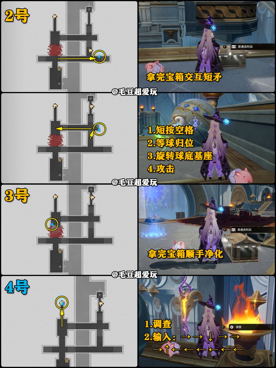 贼灵:拾取宝箱→出现贼灵→长按空格回溯抓贼灵(绿色:松手+长按空格)→抓到贼灵后对话/战斗→获得贼灵奖励→别忘记拾取宝箱。