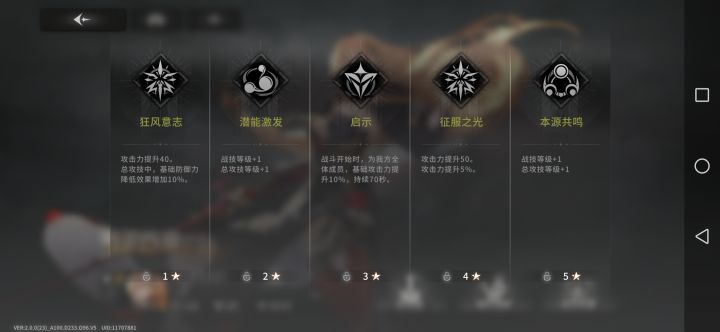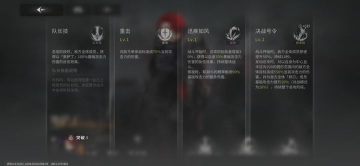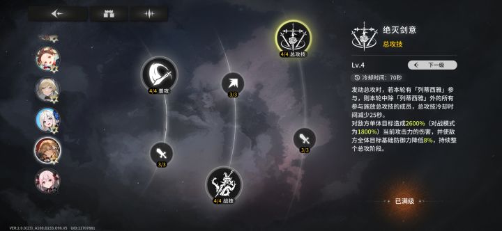 技能加总攻能量,大招开局移速和异刃增伤,完全就是为PVP而生的,开局移速搭配黑羽移速转攻击和杰西卡自爆都很有用。
