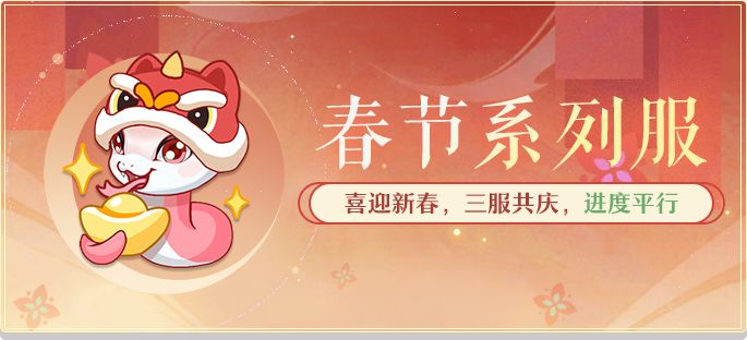 【蛇年顺】、【蛇年吉】两个服预估在开服后的一个半月内将合并至春节大服【蛇年喜】,构筑起一个超大规模的生态体系,打造出完全体的蛇年新春大服,营造长安十万人共庆新春的盛景。