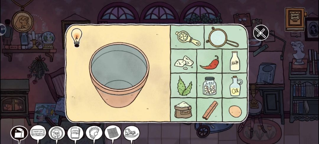 在同场景女生1917年,根据凳子上的幸运药水制作提示,点击左上的药水橱柜,显示顺序混乱。书里说3号是月光花、4号是四叶草、6号是星星药水,就能得知大致顺序(1和8是根据形状和上面的数字,其他的根据标识上的图案例如2号两根火柴,5号五角星星)