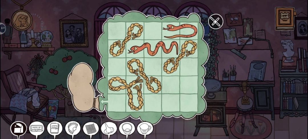 来到女角色1918年,拿取窗台上的量勺,点击窗外的树干,先点左下的虫子,再点上方中间的虫子,绿色的幼虫就出来了。