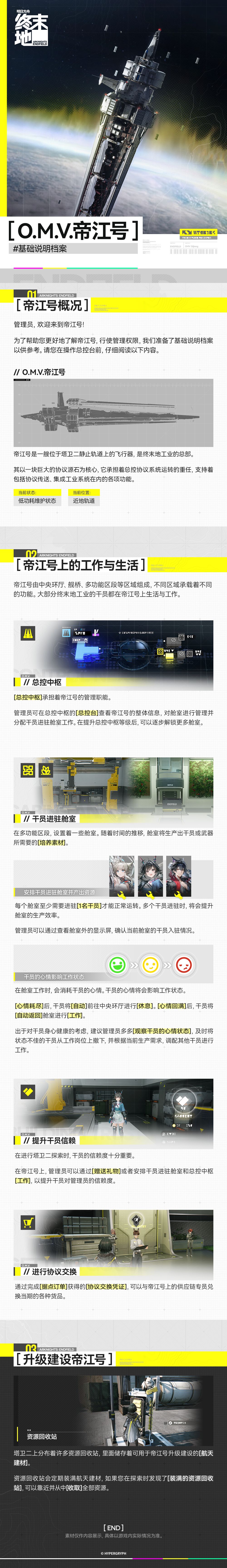 为了帮助管理员更好地了解O.M.V.帝江号,行使管理权限,我们准备了基础说明档案以供参考。