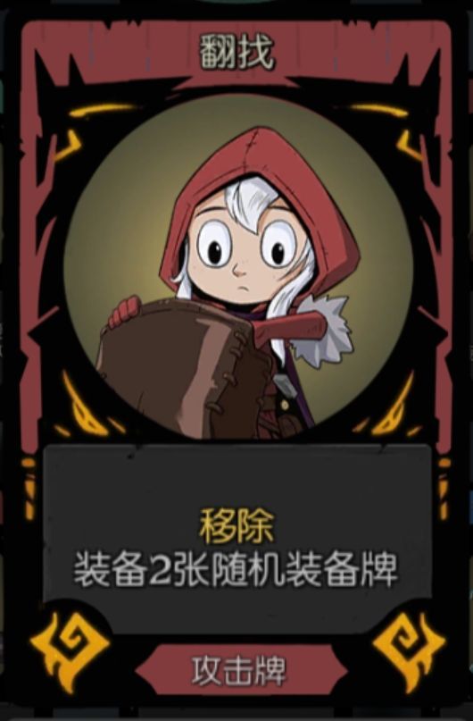 翻找这张牌几乎是为餐叉量身定做的,或者说翻找这个牌本身强度就很高,在翻找数量较多,装备牌叠起来之后,你会看到怪物被一堆伤害打死,而你的盾厚到打不动只用挂机就好了,所以说,翻找的上限非常高
