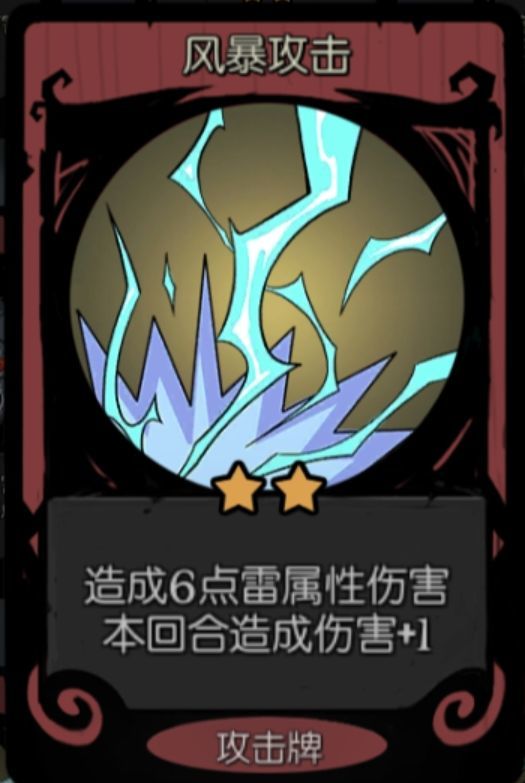 2星风暴可以让你前期过的非常舒服,你可以看到我的截图上大部分有风暴打击,这都是我进门拿的,风暴打击真的是一个非常好用的卡,自身伤害并不低,还附带增伤效果,可以从头用到位,但是建议只进门拿一个就够了,拿多了反而卡手