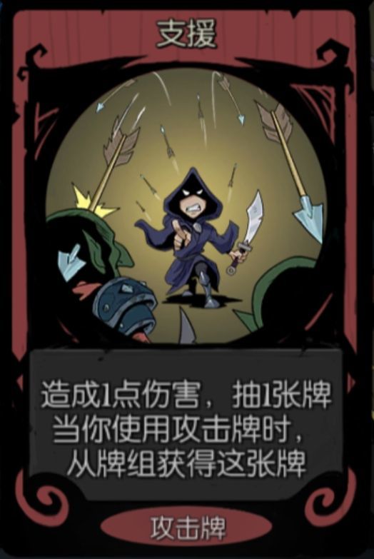 在前期拿牌,支援,迅捷打击这种建议见到就拿,这些白嫖卡在餐叉的效果下变成了抽2的过牌卡,拿了是永远不亏的,特别是支援,这个牌在很多时候都起到了很关键的作用