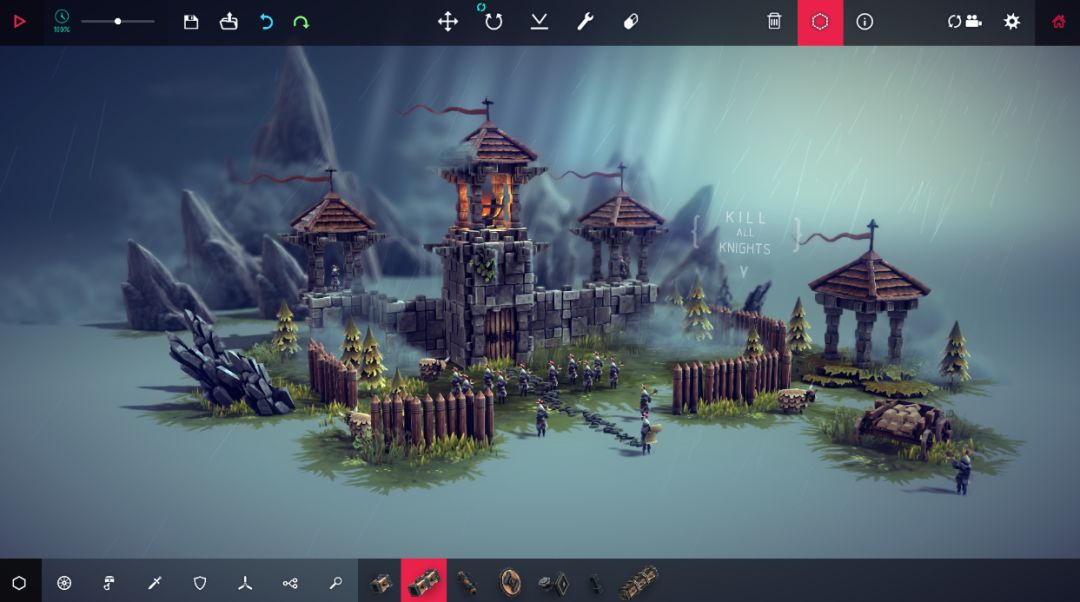 在《围攻》中,玩家充分发挥想象力,在游戏提供的丰富零件库中自由挑选、组合,搭建出各种独特的攻城器械。利用物理模拟原理,驱动这些机械冲向目标,在破坏中享受摧毁系统目标带来的成就感,顺利完成关卡挑战 。