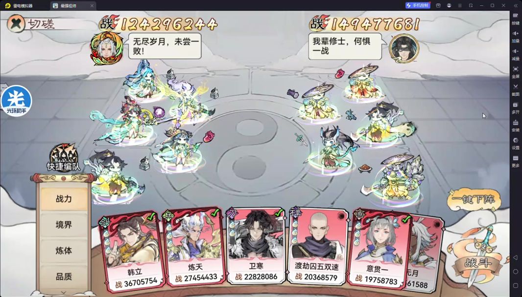 装备和阵图:速度要求快双方韩立10%速度即可,其余输出拉满