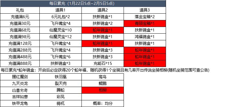 6.喜迎新春,累计消费活动奖励调整:(蛇年金宝袋*10)