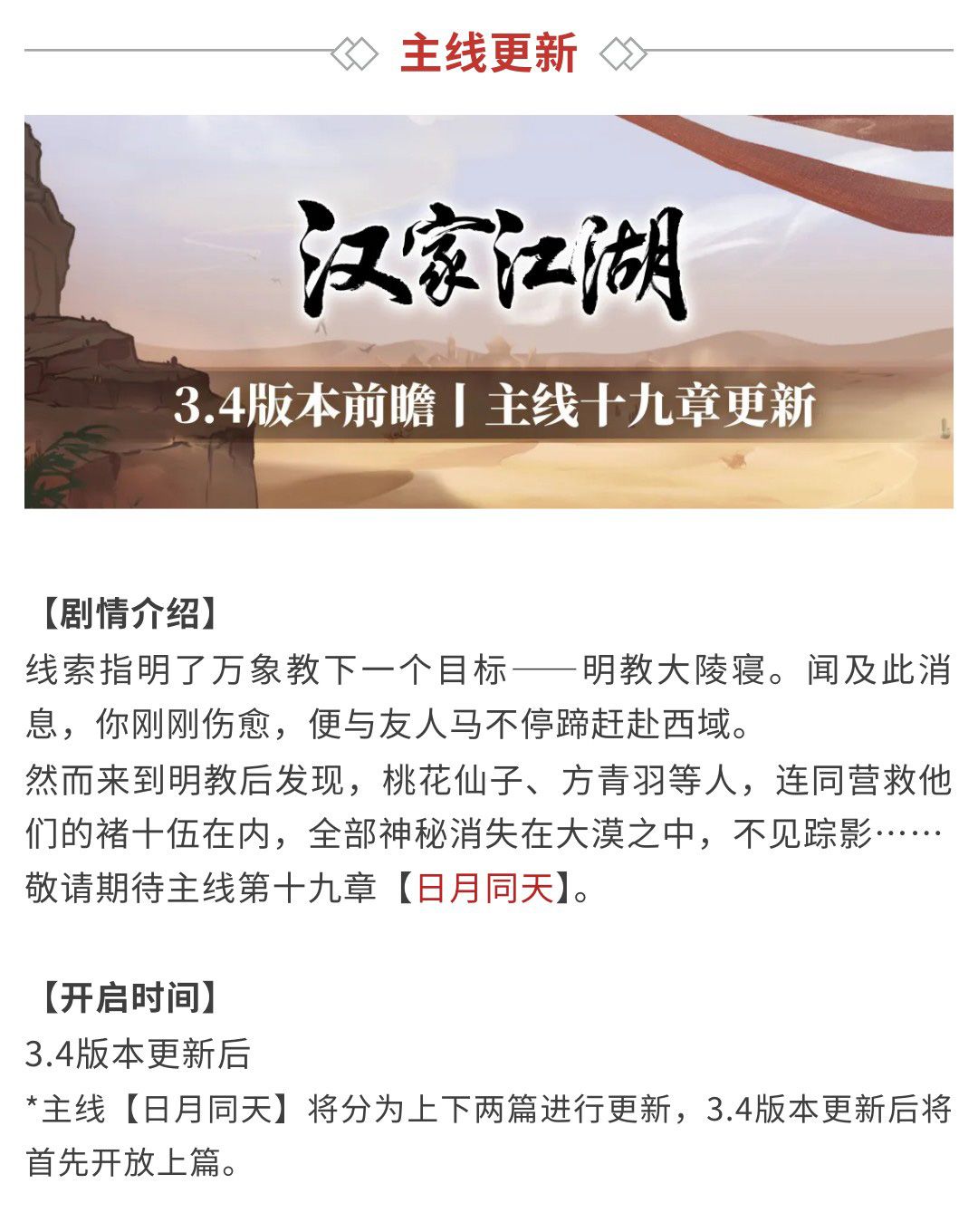 【汉家江湖】版本前瞻 | 主线第十九章——日月同天