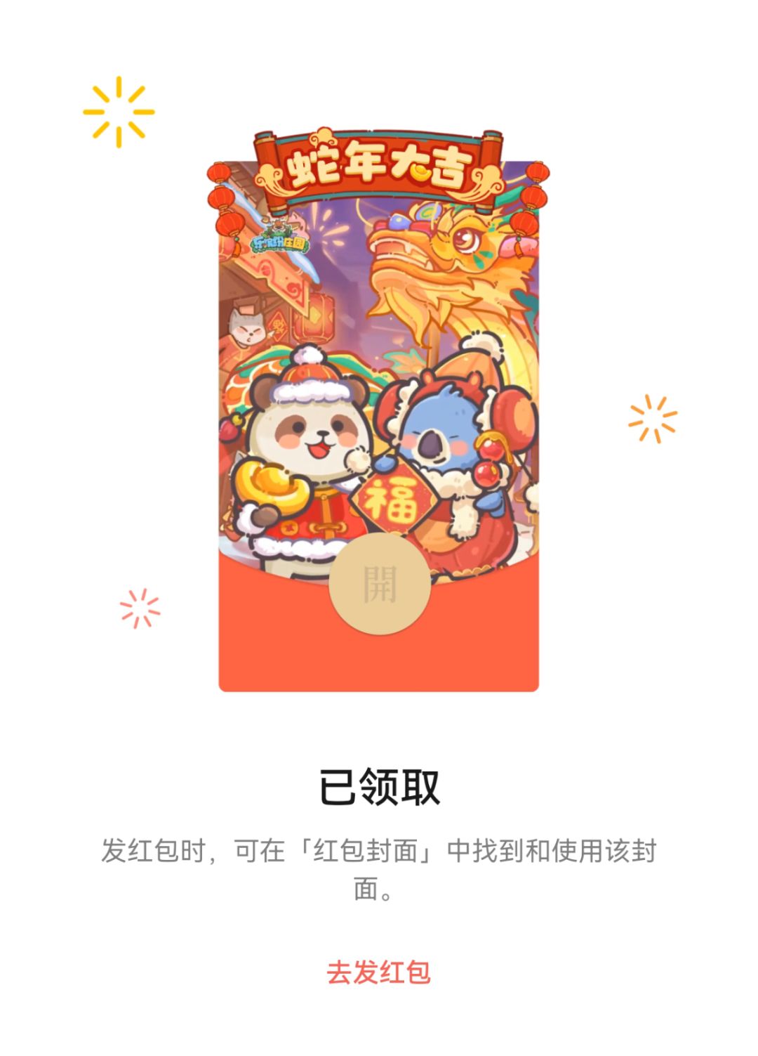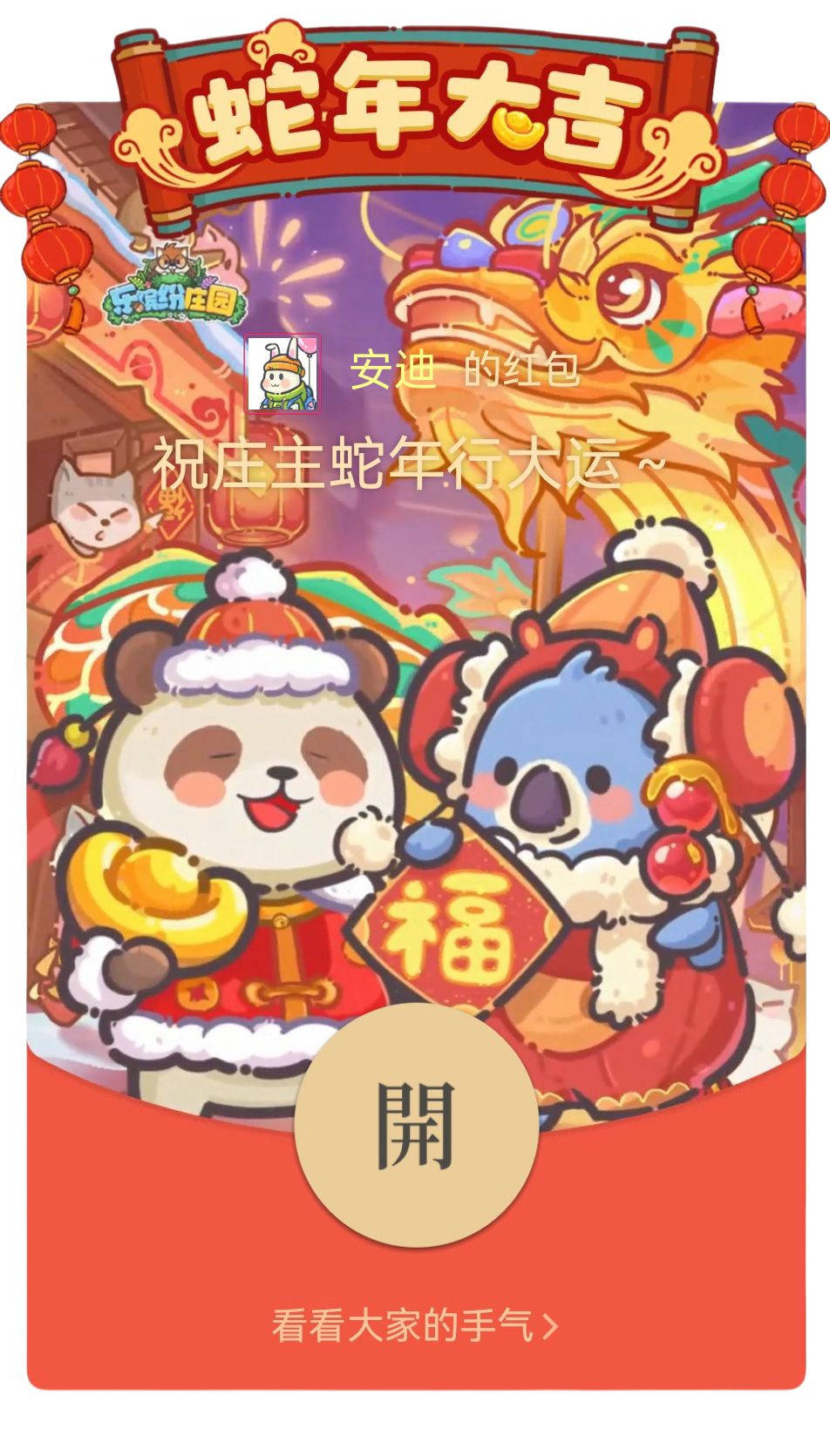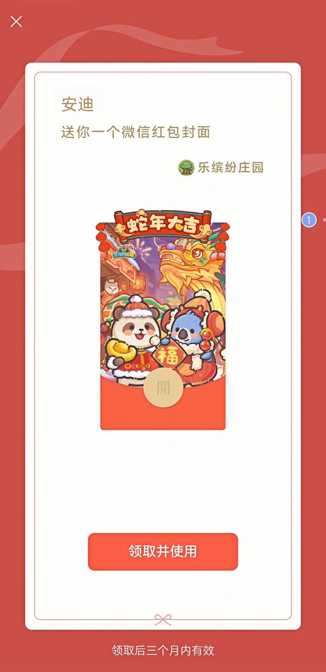 《乐缤纷庄园》春节限定红包封面,就领取成功啦~