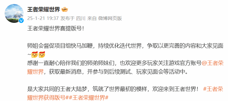 对此,《王者荣耀世界》官方表示会督促项目组快马加鞭,持续优化迭代世界,争取以更完善的内容和玩家们见面。
