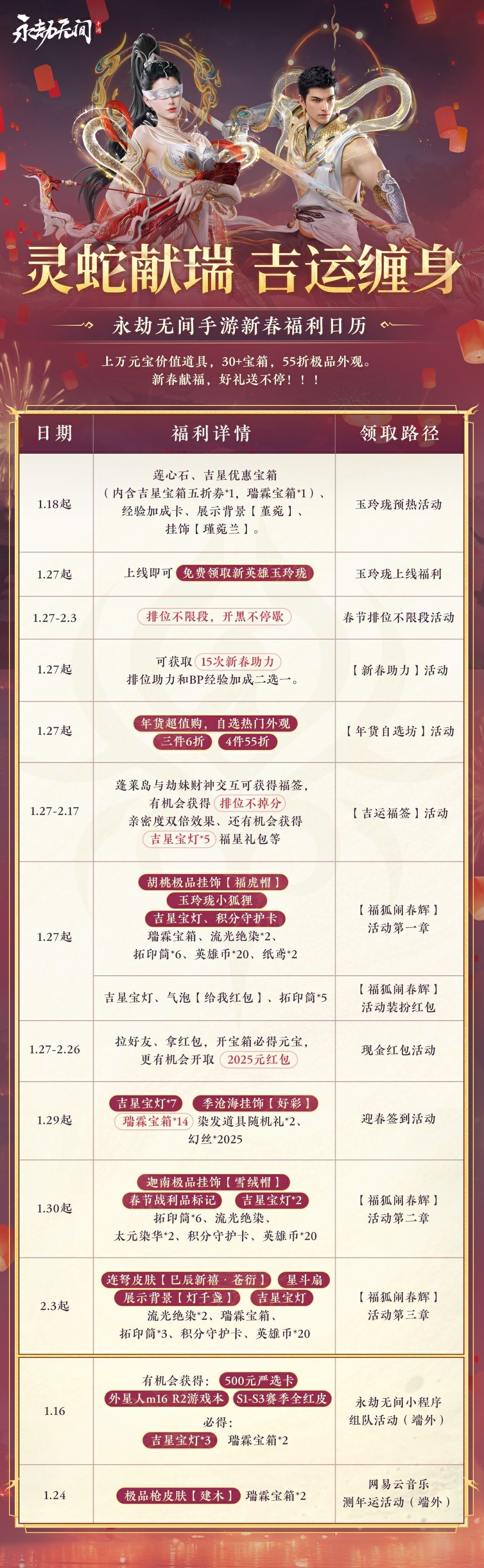 最后,劫妹在这献上新春福利日历,一图看清每日必领奖励和必做活动!