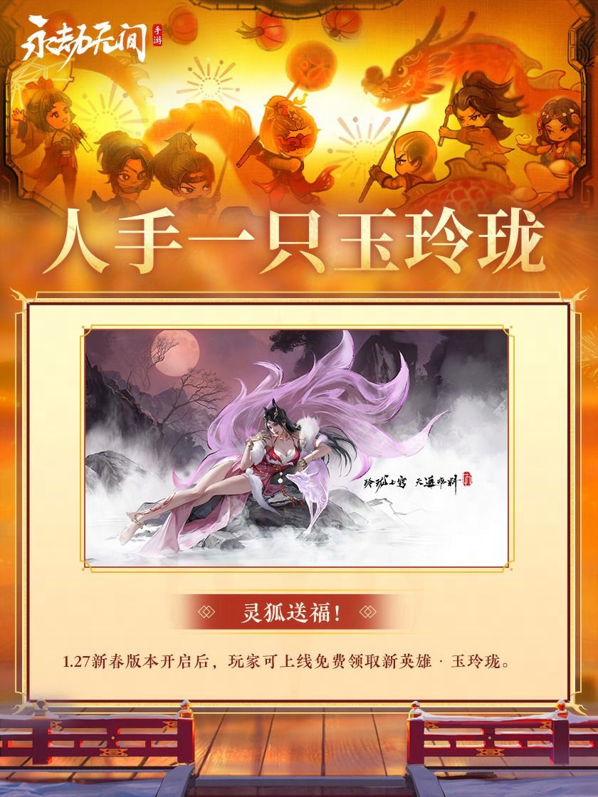玉玲珑即将上线,这么漂亮的小狐狸谁不爱?1月27日新春版本开启后,登录游戏查看邮箱即免费领取小狐狸一只~