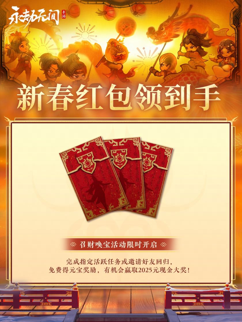 过年就是好啊,宝箱外观红包拿到手软,劫妹决定,这个春节就在永劫手游过了!