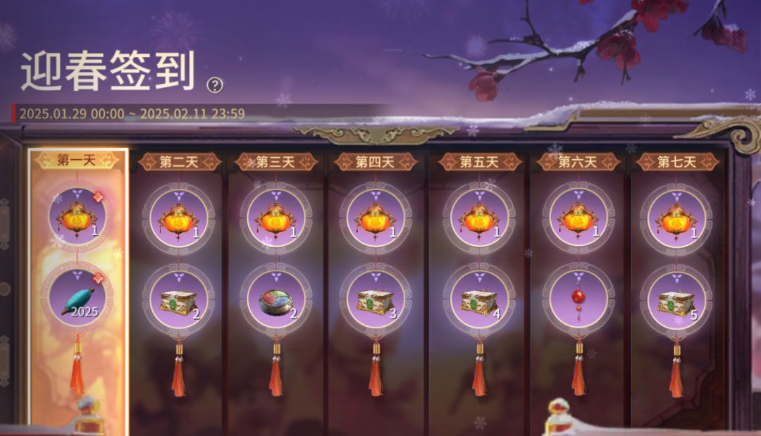 每日登录签到共可获得吉星宝灯*7,瑞霖宝箱*14。