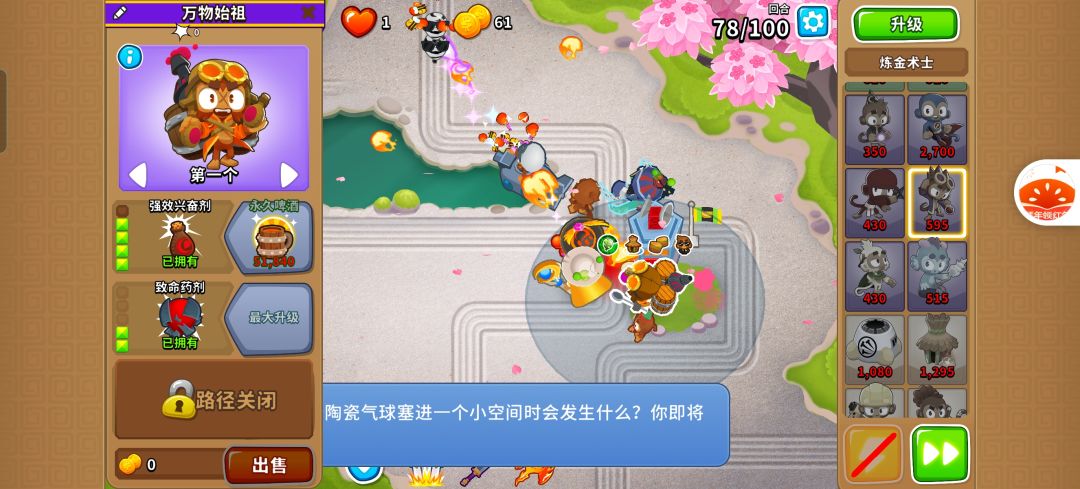 3,不用磨蹭,把法师猴点到502升级为Super Monkey。注意事项:陶瓷海用法师猴技能过前两波,萨乌达技能过最后一波。平时多用法师猴技能,但也不要乱用,会死的。