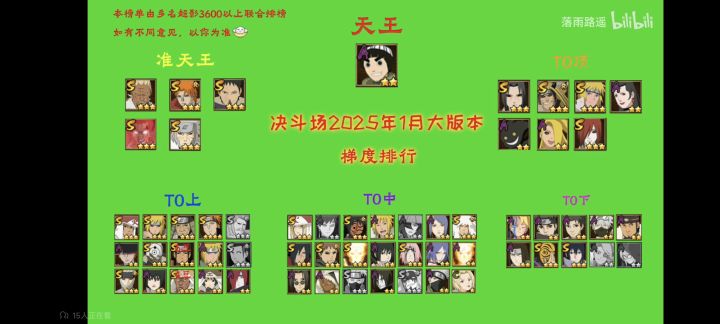 所以现在紫✓根据路遥的排榜来看,排在t0下位可能算是比较极端的,但你不可否认的是路遥这人他打的分段所表现出来的一个整体忍者趋势当中,紫✓算是比较客观的了,同时就最近这几天看了墨情老师和斑马老师等人的直播,高分基本没出现过紫✓了,甚至ban位都不配进(基本全是ban三破面+李✓)