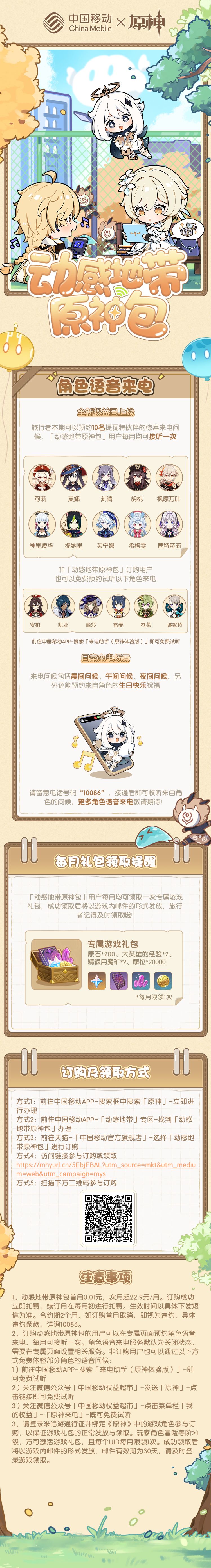 中国移动「动感地带原神包」角色语音来电功能现已上线,